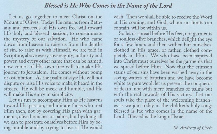 Sunday, March 29th, 2026 ● Palm Sunday ● Festal Tone